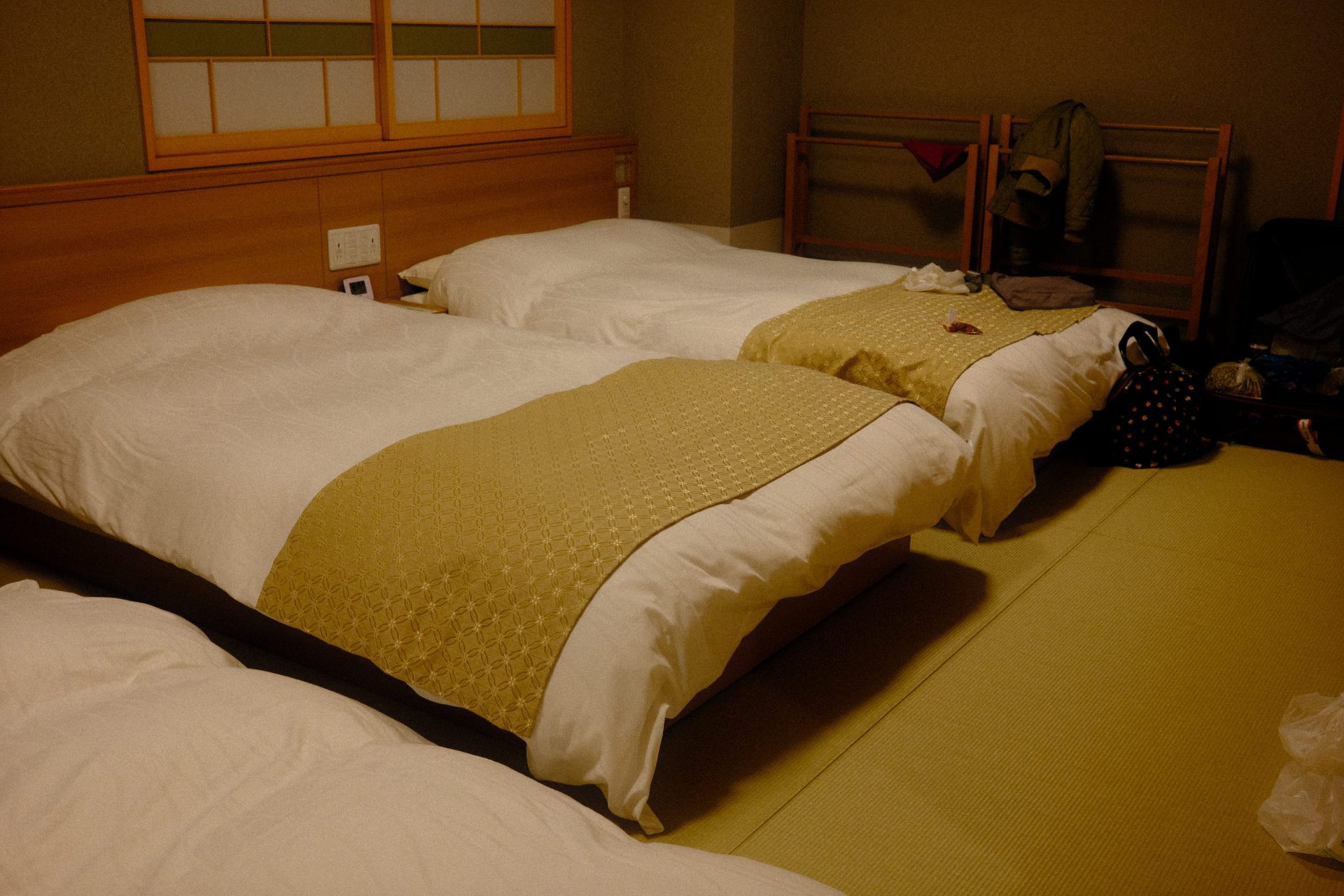 The entire hotel is laden with tatami flooring; guests must leave their shoes in the lockers at the entrance.