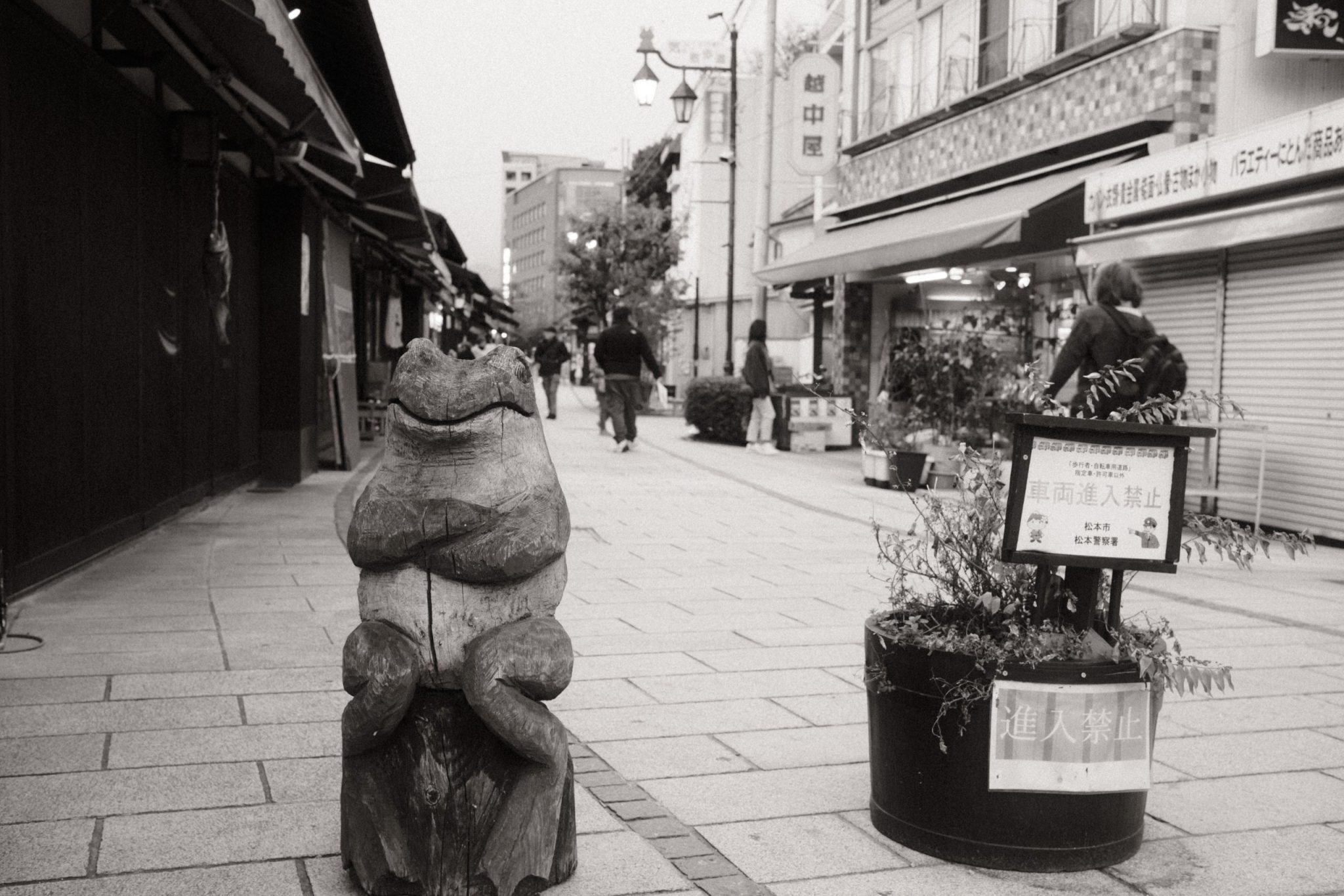 Just across a small bridge on the way to Matsumoto Castle, Nawate Street is a row of small shops with a subtle but recurring frog theme.