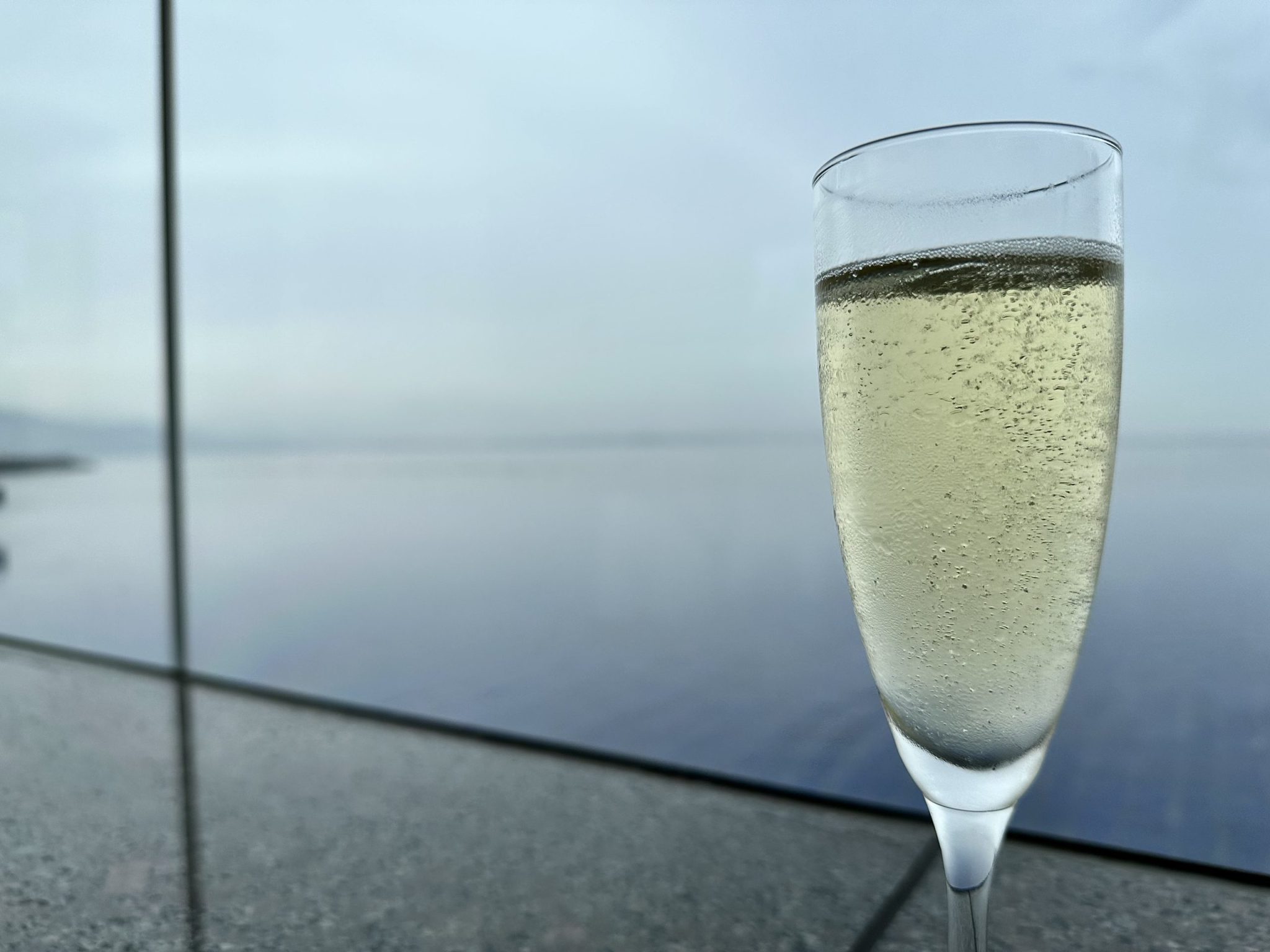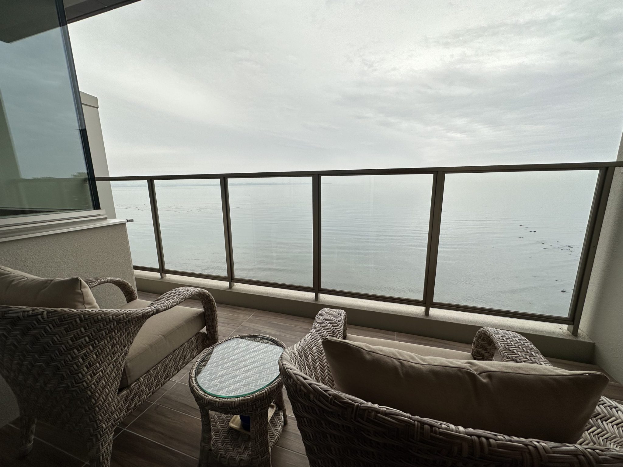 Enjoying a glass of welcome drink as we await our room to be ready.