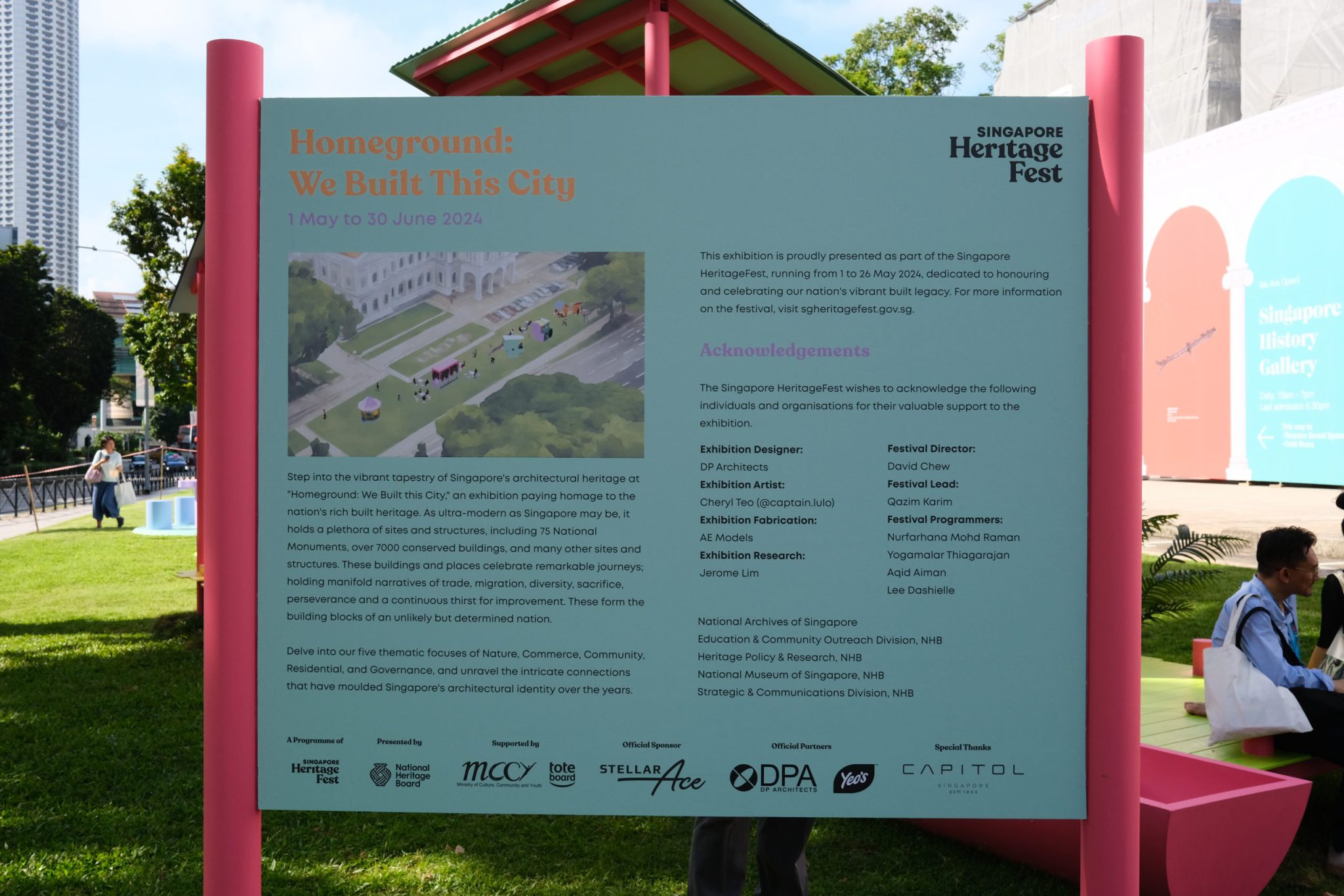 Our first meeting was on the lawn outside the National Museum of Singapore. Here is the art installation titled HOMEGROUND: We Built This City.
